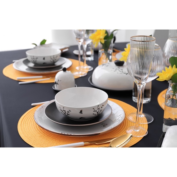 Посуда сервировочная Доляна «Весенний вечер» изготовлена из качественного доломита. Предметы выполнены в чёрно-белых тонах, поэтому они подойдут практически для любой сервировки разных стилей, а также с лёгкостью украсят интерьер вашей кухни.
