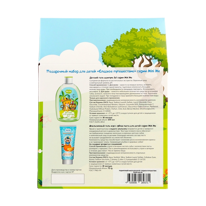 Подарочный набор косметики детский Mini Me: гель-шампунь 2 в 1, 500мл + зубная паста, 75 г