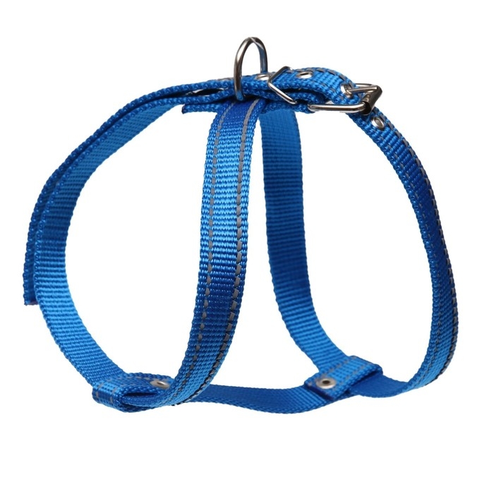 Шлейка супермягкая со светоотражающей прошивкой, обхват 62-69 см, голубая