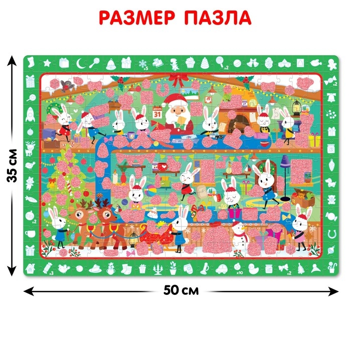 Пазл с секретом «Собери, найди, покажи. Фабрика Деда Мороза», 260 деталей, в комплекте волшебная лупа