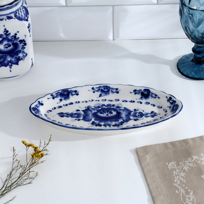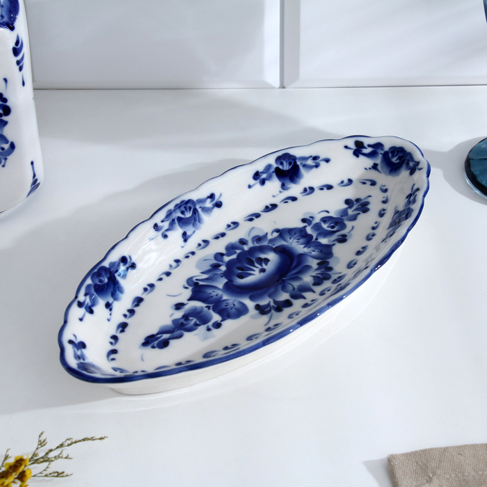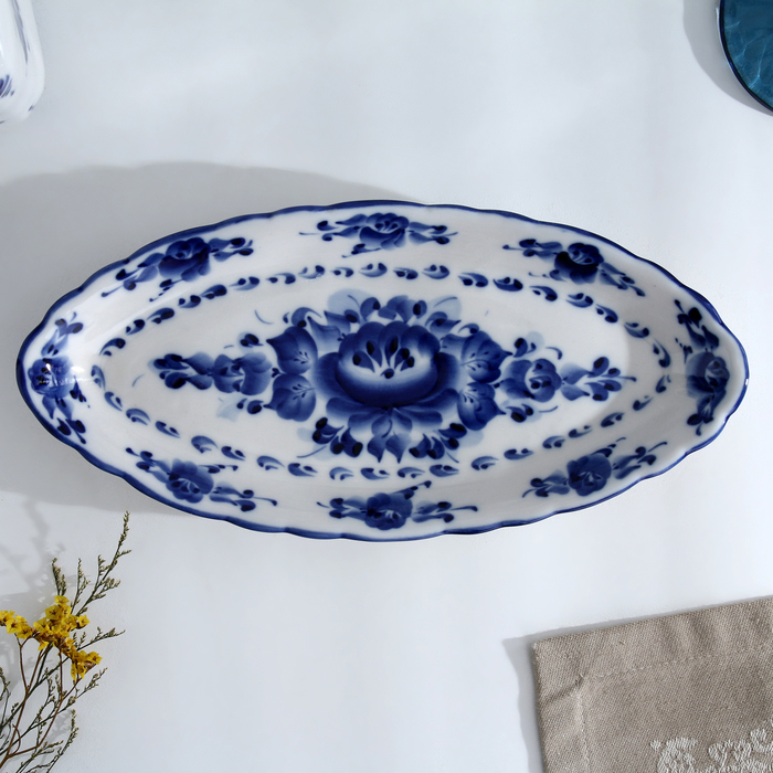 Селёдочница «Цветок», 27×13×2 см, гжель