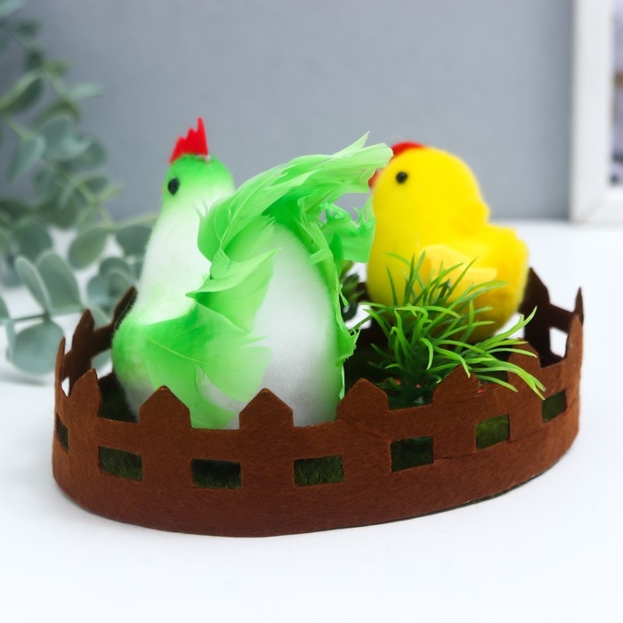 Сувенир пасхальный "Курочка и цыплёнок на лужайке" 15х10х9 см