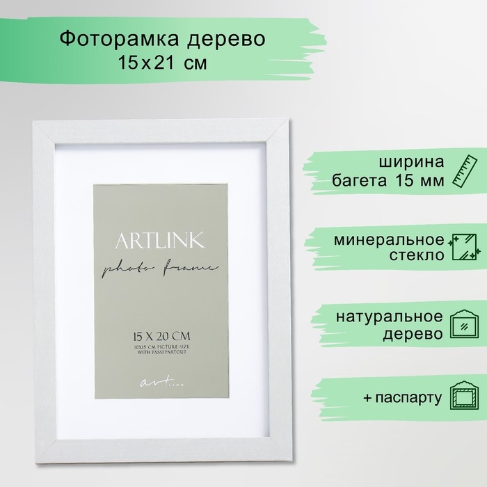 Фоторамка МДФ "Ellis" 15x20 см, с паспарту, серебро