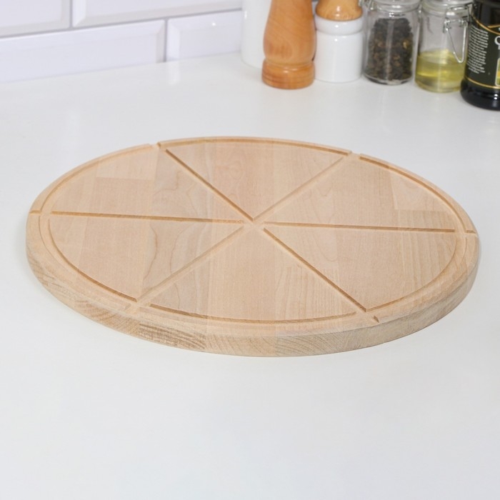 Доска деревянная с желобом "Для пиццы" на 6 кусков 32х32х1,8 см береза