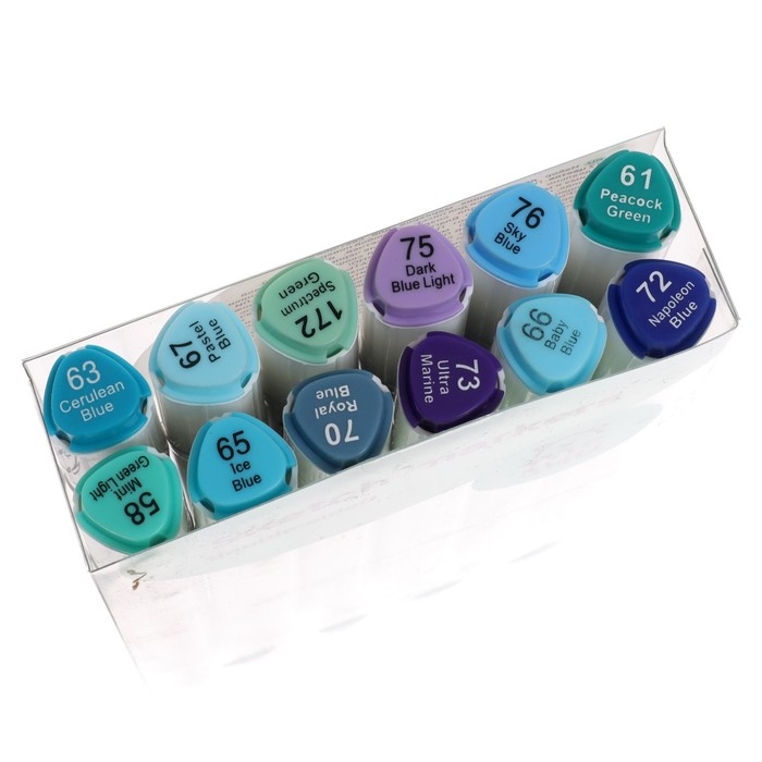 Маркеры для скетчинга двусторонние MESHU, 12 цветов (морские цвета)