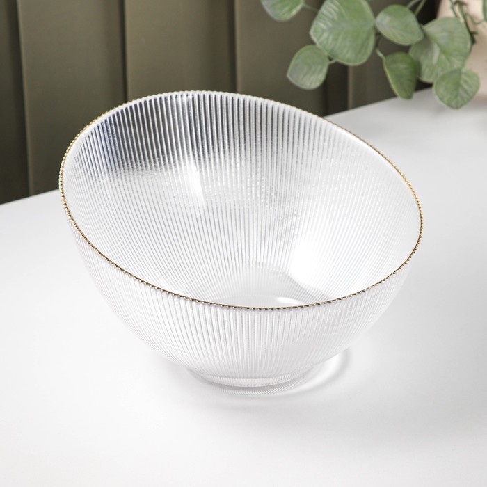 Салатник «Орион» изготовлен из качественного и прочного стекла, имеет необычную форму и красивый рельеф и отводку золотом по краю. Такой салатник подойдёт для классической сервировки и фуршета.