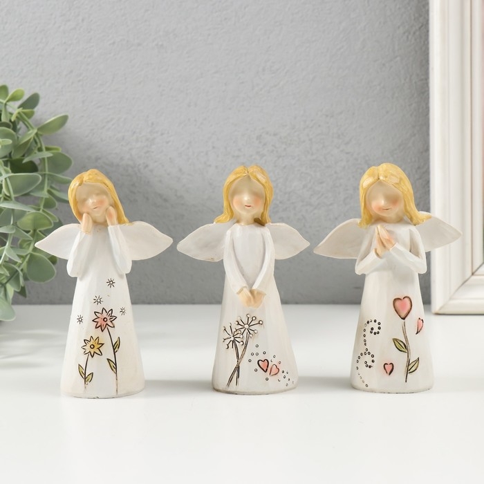 Сувенир полистоун "Ангел-девочка в платье с цветами" МИКС 4,5х7,5х11,5 см