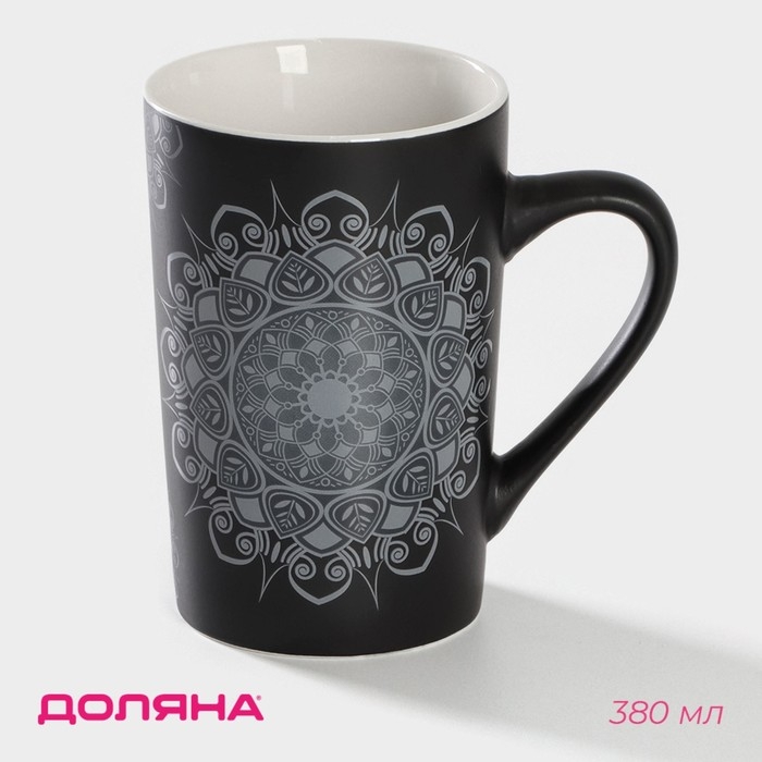 Кружка фарфоровая Доляна «Мандала», 380 мл, белый узор