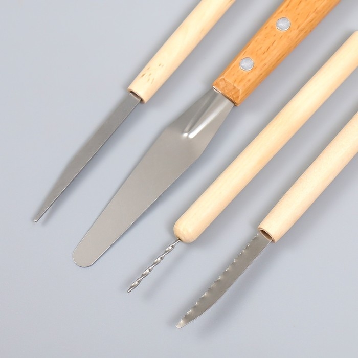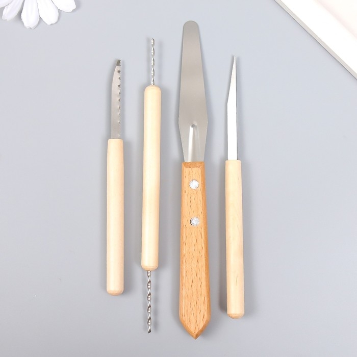 Инструменты для работы с глиной набор 4 шт дерево, металл h=12,5 13,5 17 и 17,5 см