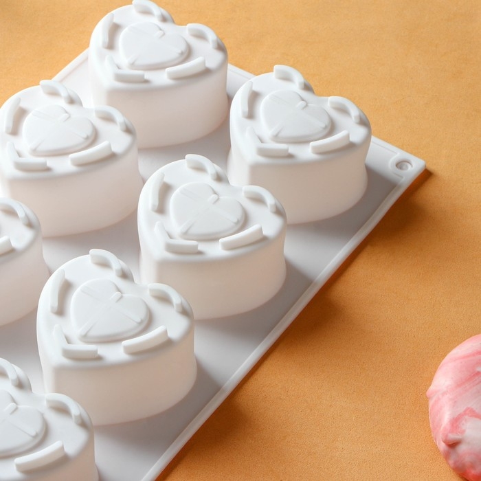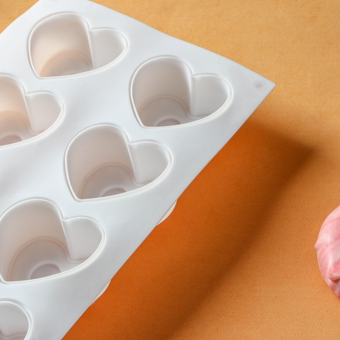 Форма для муссовых десертов Доляна «Сердце», силикон, 29×17×4,3 см, 8 ячеек (5,5×6,2×3,5 см), цвет белый