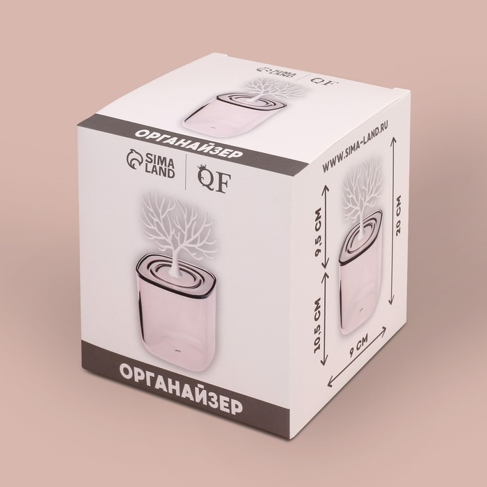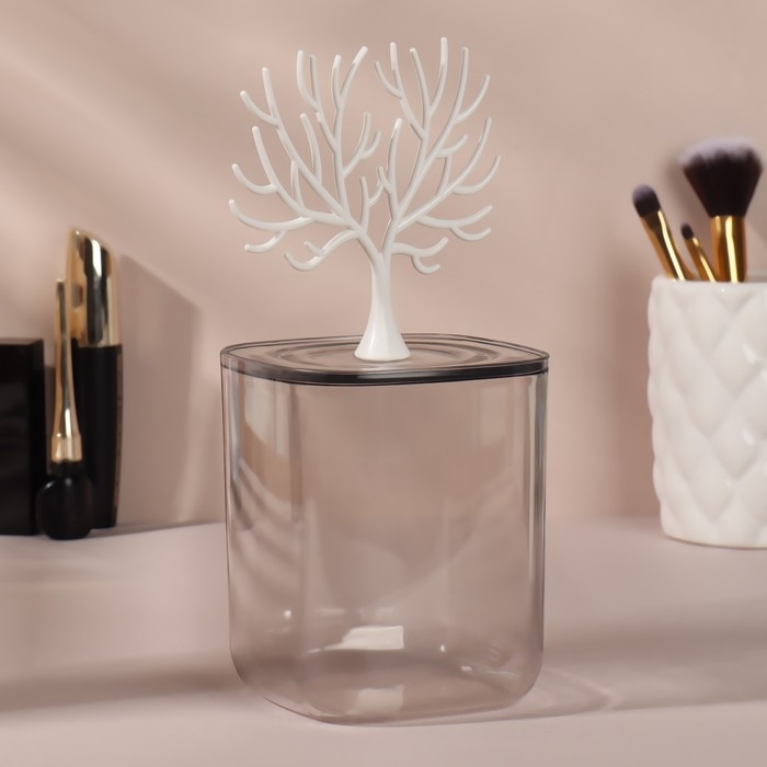 Органайзер для хранения «WOOD», с крышкой, 9 × 10,8/20 см, в картонной коробке, цвет прозрачный/белый