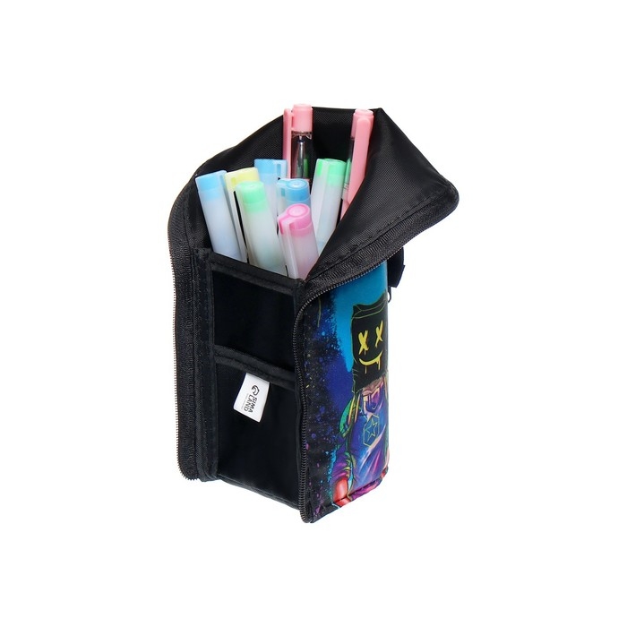 Пенал имеет оптимальный размер и вмещает в себя стандартный набор канцелярских принадлежностей для школы и творчества, в том числе линейку до 20 см.