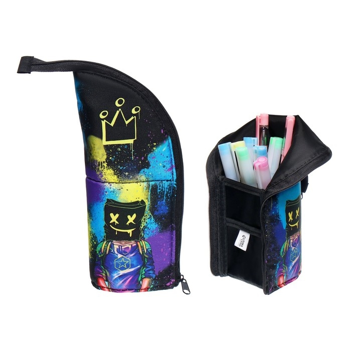 Пенал тубус-подставка, 85 х 210 х 65 мм, мягкий, тканевый, Calligrata, ПМО 12-20 "Маска"