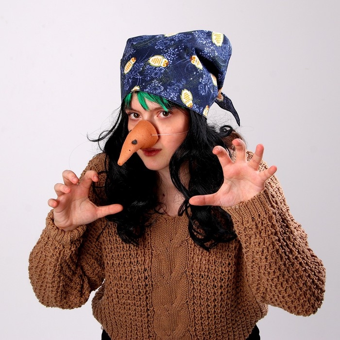 Карнавальный набор «Баба-Яга», косынка с совами синяя, парик, нос