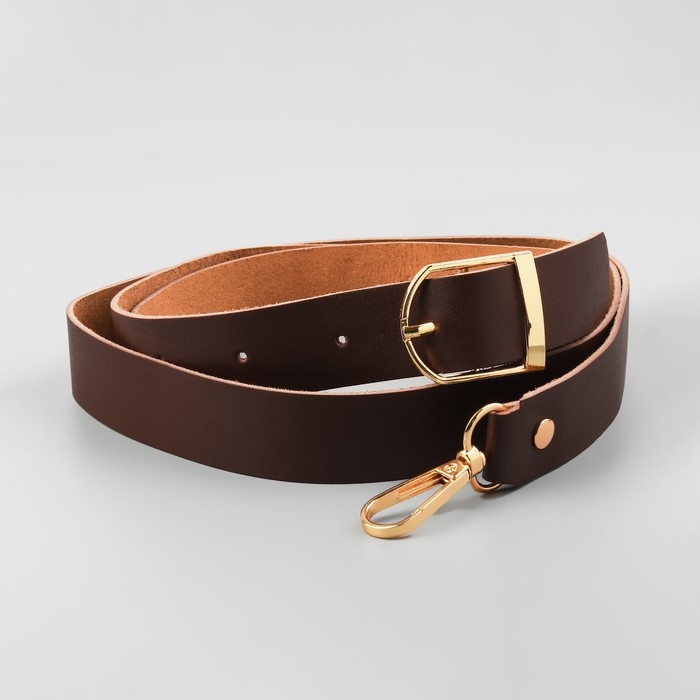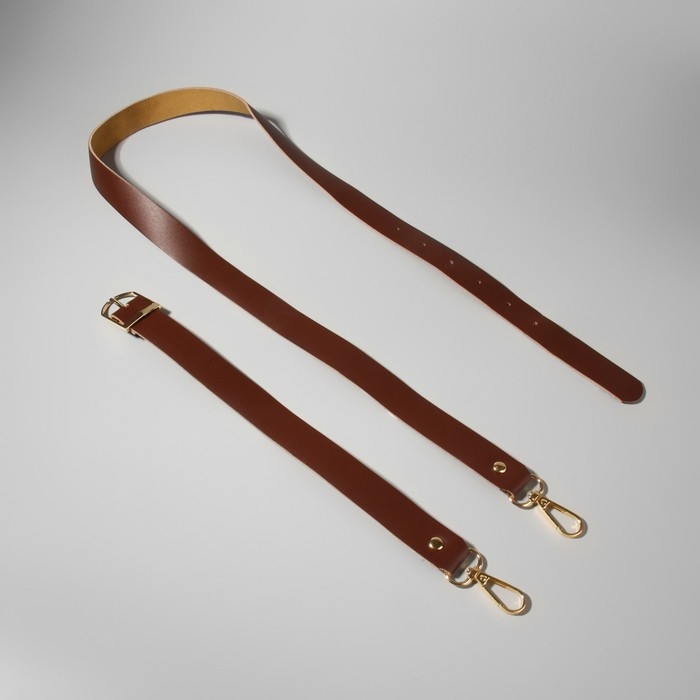 Ручка для сумки из натуральной кожи, регулируемая, с карабинами, 125 ± 2 см × 2,5 см, цвет коричневый/золотой