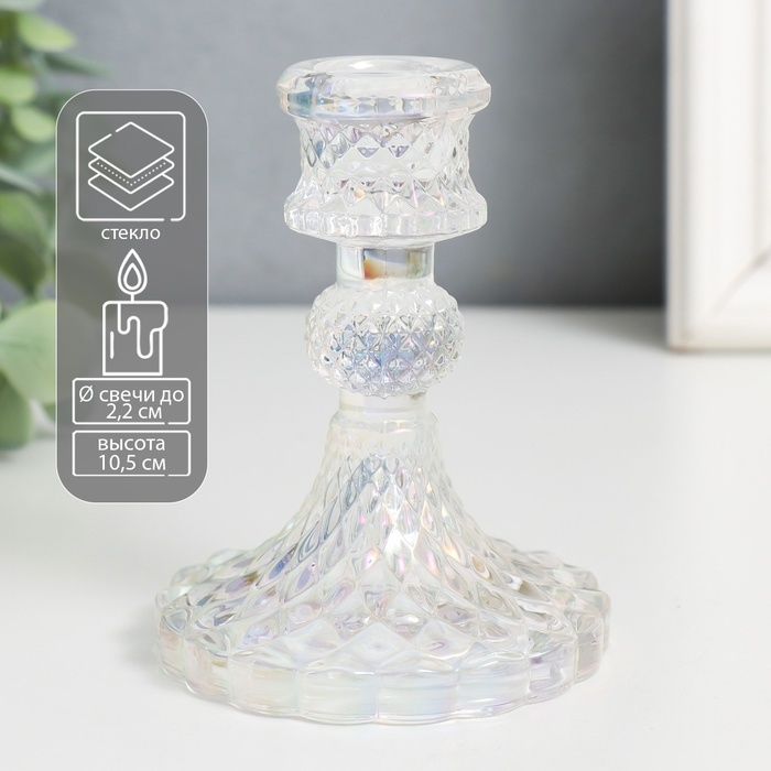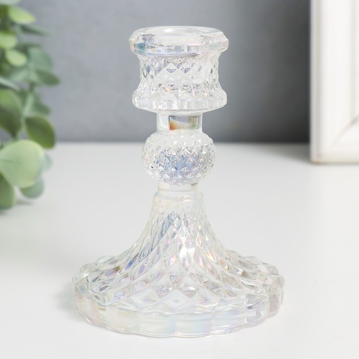 Подсвечник стекло на 1 свечу "Женева" d-2,2 см прозрачный голография 10,5х7,7х7,7 см