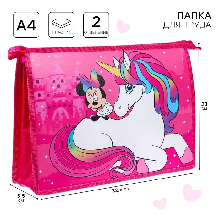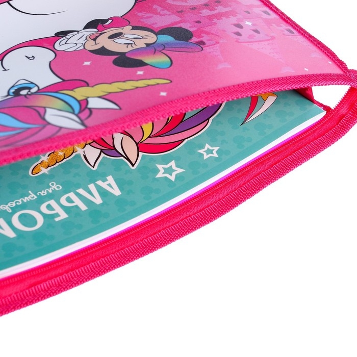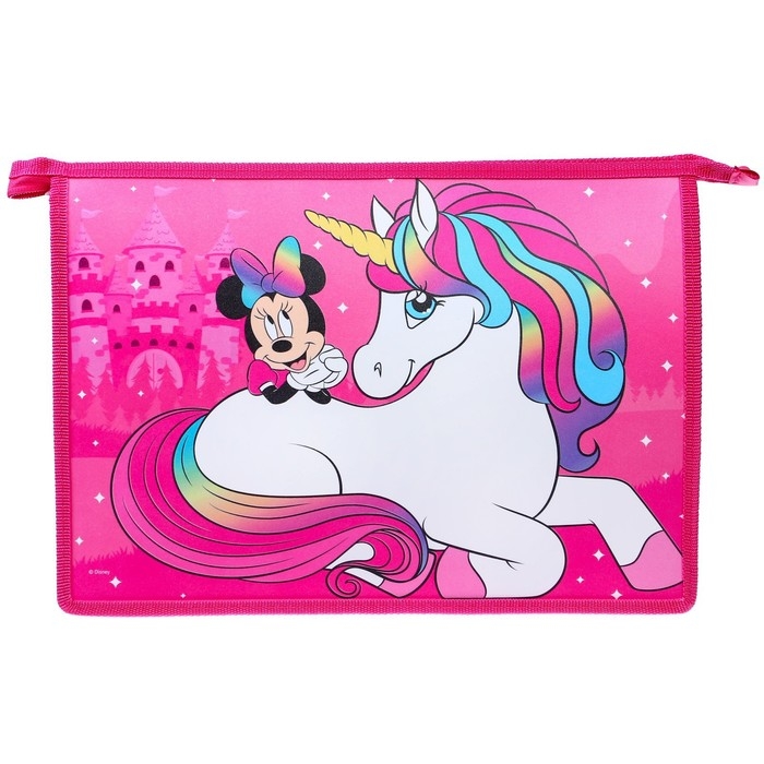 Папка пластиковая А4, на молнии, Минни Маус и единорог