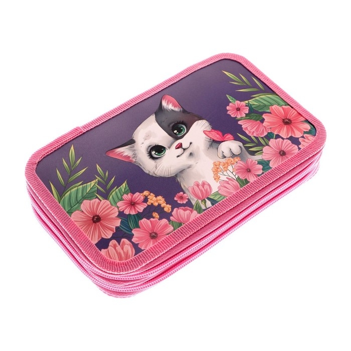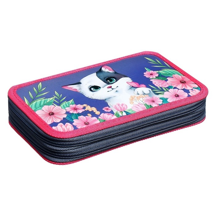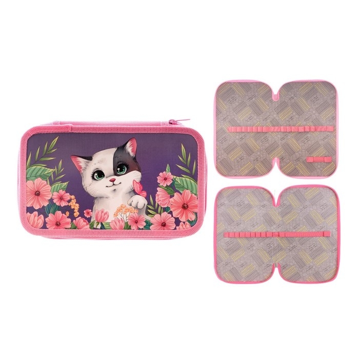 Пенал 2 секции, 125 х 205 х 40 мм, Calligrata 30П26/2 "Кот в цветах", ламинированный картон