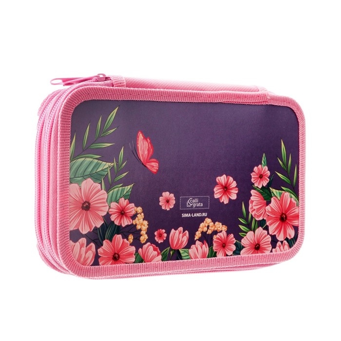 Пенал 3 секции, вкладка внутри, 140 х 210 х 40 мм, тканевый, Calligrata TOP Block "Аниме"