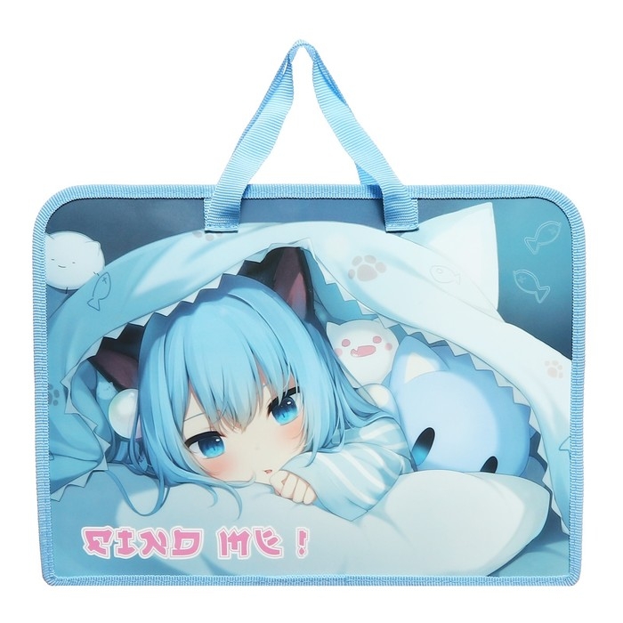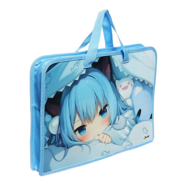 Папка с ручками А4, 340 х 245 х 45 мм, пластиковая, ручки-тесьма, Оникс ПТ-14 "Аниме милашка"