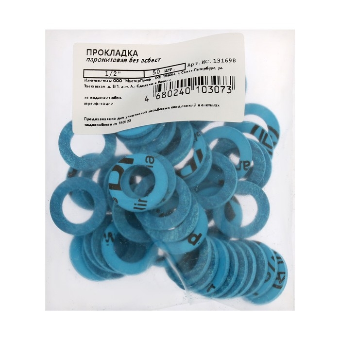 Прокладка паронитовая Masterprof ИС.131698, 1/2", безасбестовая, 50 шт.