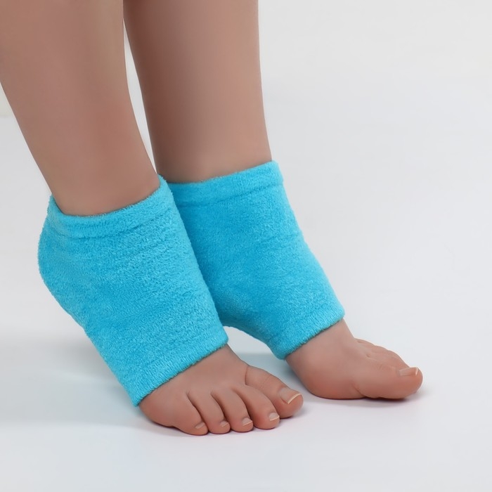 Напяточники для педикюра, увлажняющие, махровые, с силиконовой вкладкой, ONE SIZE, цвет голубой