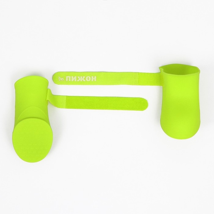 Сапоги выполнены из высококачественного ПВХ, который обеспечивает прочность и долговечность. Материал гибкий и мягкий, что позволяет удобно надеть на питомца, а лента-липучка позволит за надежно зафиксировать ботинок на лапе.