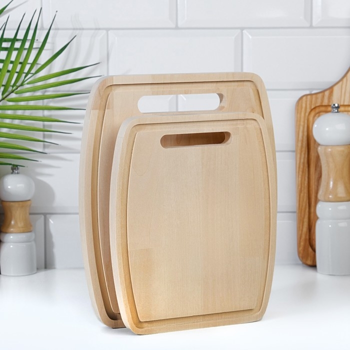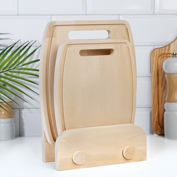 Набор досок разделочных из березы на подставке, 2 шт, 18х22 см и 22х26 см
