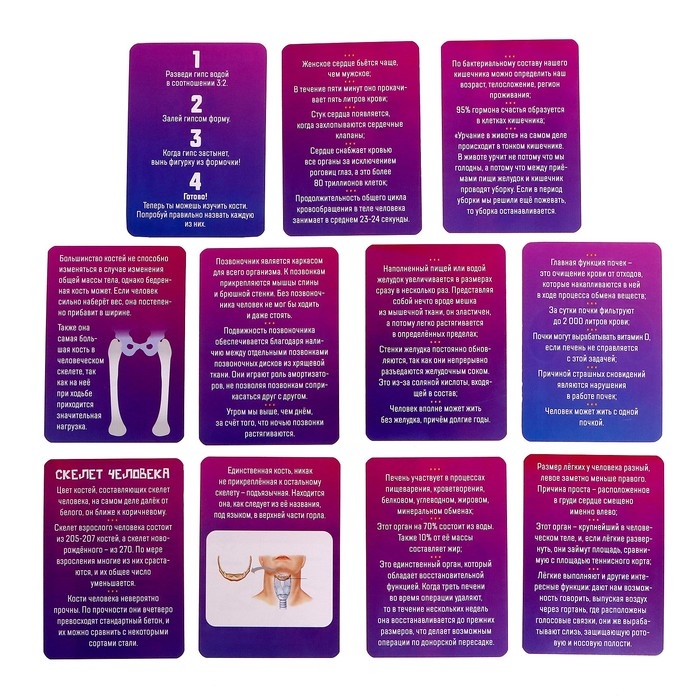 - Карточки для изучения костей и внутренних органов.