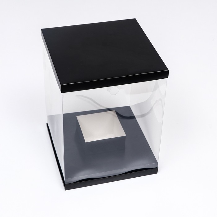 Коробка для цветов с вазой и PVC окнами, складная, 23 х 30 х 23 см, чёрный