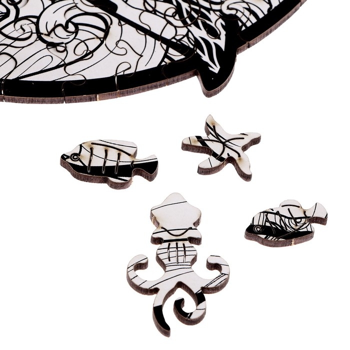 - Каждая деталь в наборе — это отдельная фигурка. Все они изготовлены из дерева, тщательно обработаны и не имеют заусенцев. Поэтому собирать такой пазл приятно и удобно.