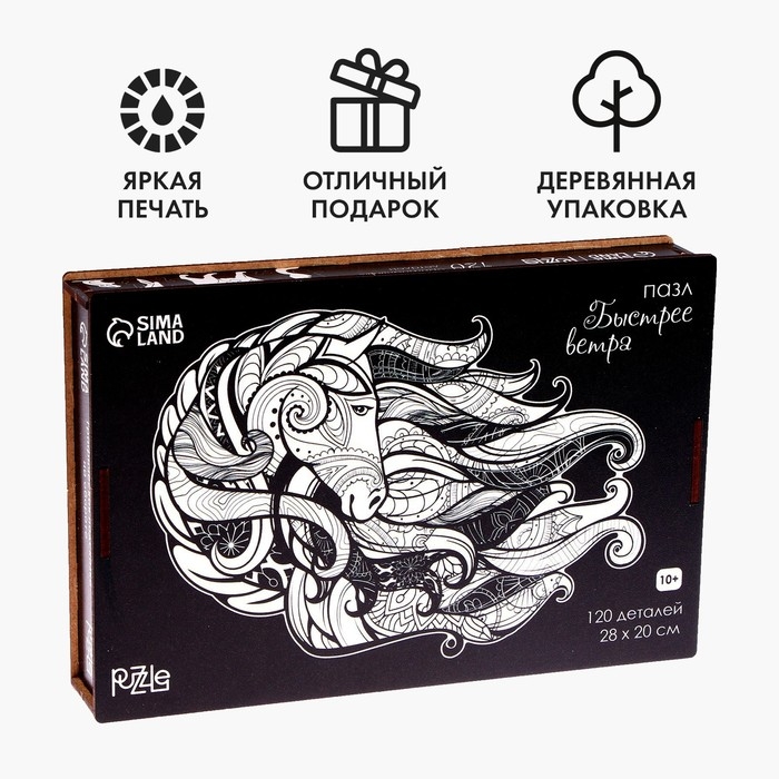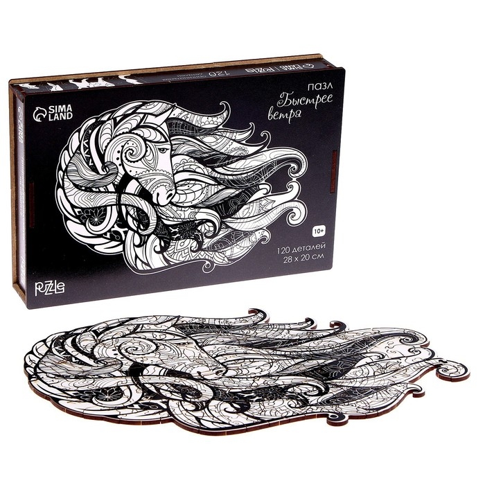 Пазл деревянный фигурный «Быстрее ветра», чёрно-белый, 120 элементов