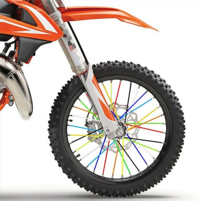 Декоративные накладки (трубки) на спицы мотоцикла, набор 72 шт из мягкого ПВХ. Для установки не требуется переспецовка колеса. Накладки имеют продольную прорезь и просто надеваются на спицу. Подходят для большинства внедорожных мотоциклов. Используются для шин размером 10-21 дюйм, легко обрезаются под нужный размер. Бюджетный способ обновить дизайн колёс Вашего мотоцикла. Можно подобрать один цвет или комбинировать разные цвета - полёт Вашей фантазии!