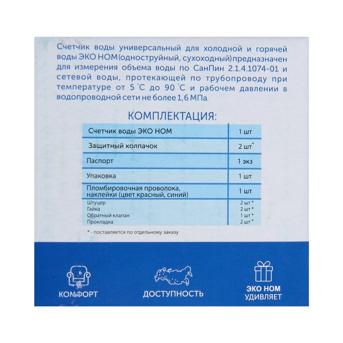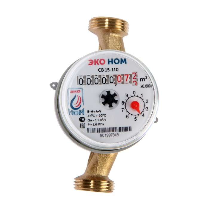 Счетчик воды «ЭКО НОМ» СВ-15-110, универсальный, 1/2", без комплекта присоединения