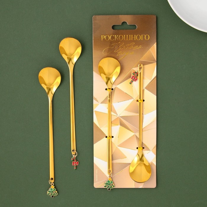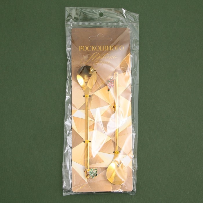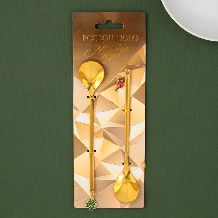 Новый год. Подарочный набор ложек с подвесами «Роскошного нового года», 2 шт., 14.8 х 2.7 см