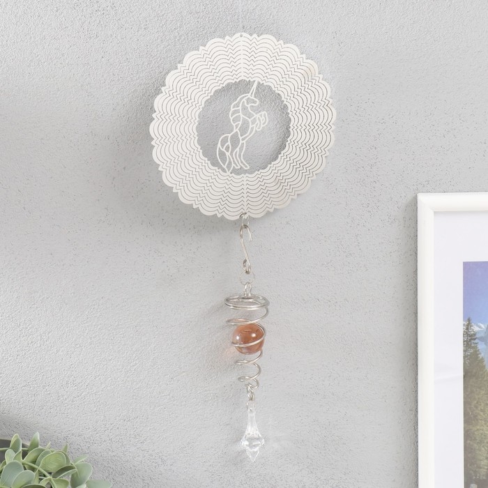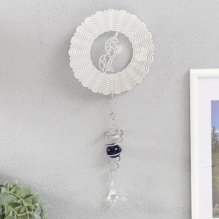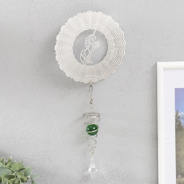 Ветряной колокольчик металл 3D "Единорог" с бусиной 13,5х13,5х31 см