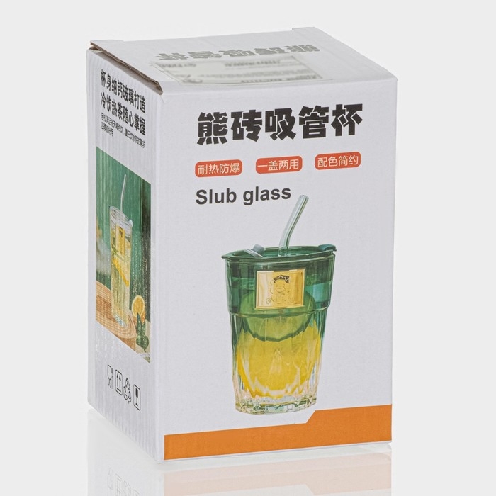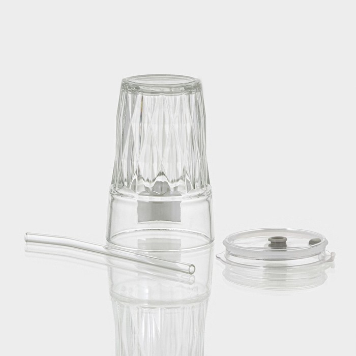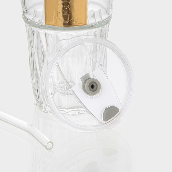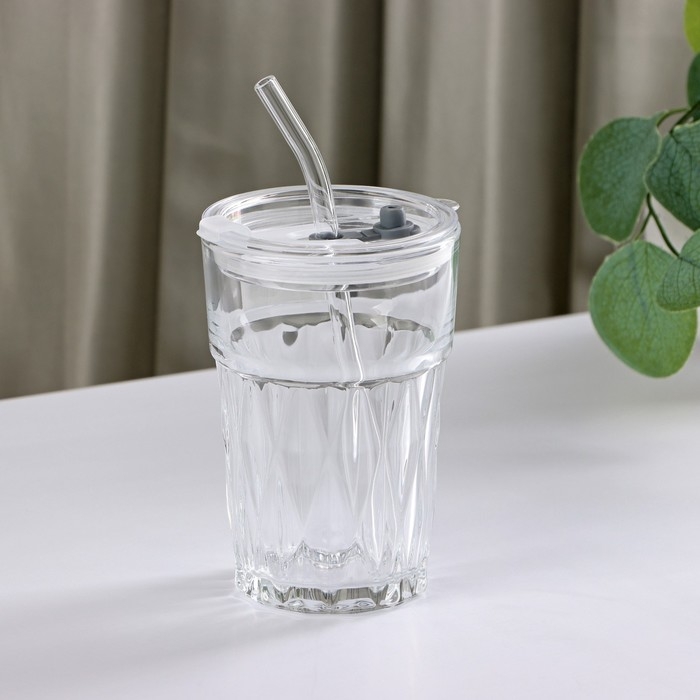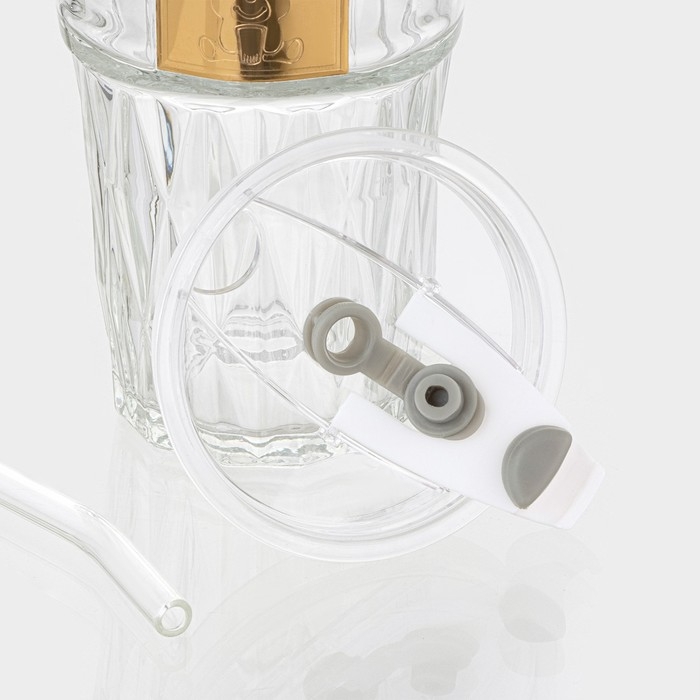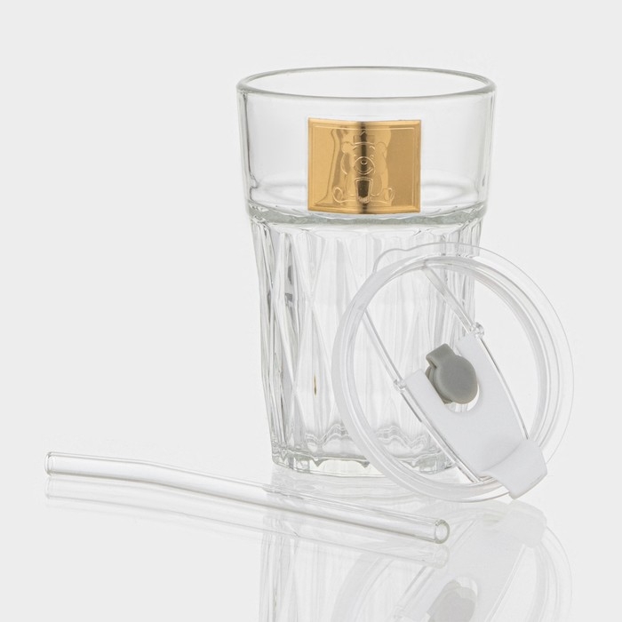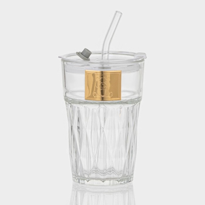 Стакан стеклянный с крышкой и трубочкой «Крона», 400 мл