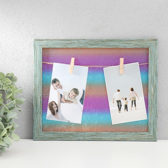 Фоторамка пластик, текстиль на 2 фото "Радужная ночь" с прищепками 27,7х23 см
