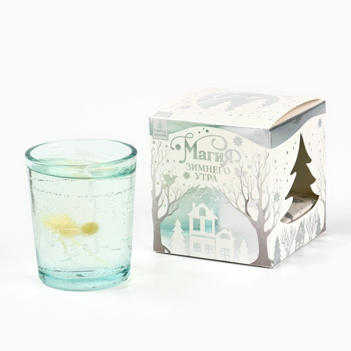 Новогодняя свеча гелевая в стакане с декором внутри «Новый год: Еловый лес» 5 х 5 х 6 см