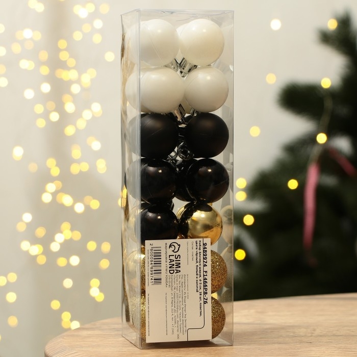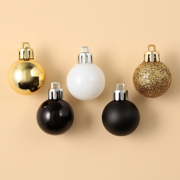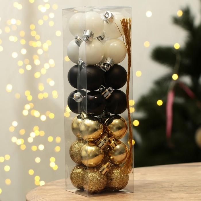 Шары ёлочные новогодние, на Новый год, пластик, d=3 см, 28 шт., цвет чёрный, белый и золотой