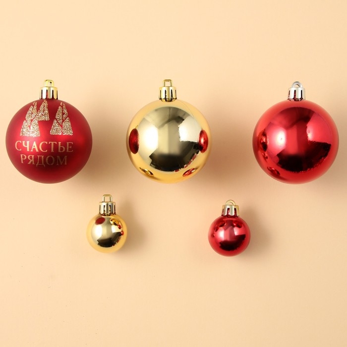 Шары ёлочные новогодние, на Новый год, d=3 и d=6, 15 шт., цвет красный и золотой