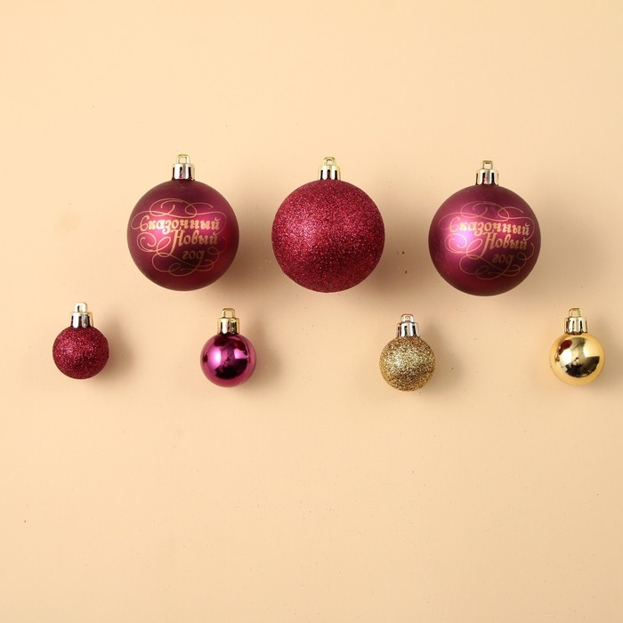 Шары ёлочные новогодние, на Новый год, d=3 и d=6, 15 шт., цвет винный и золотой