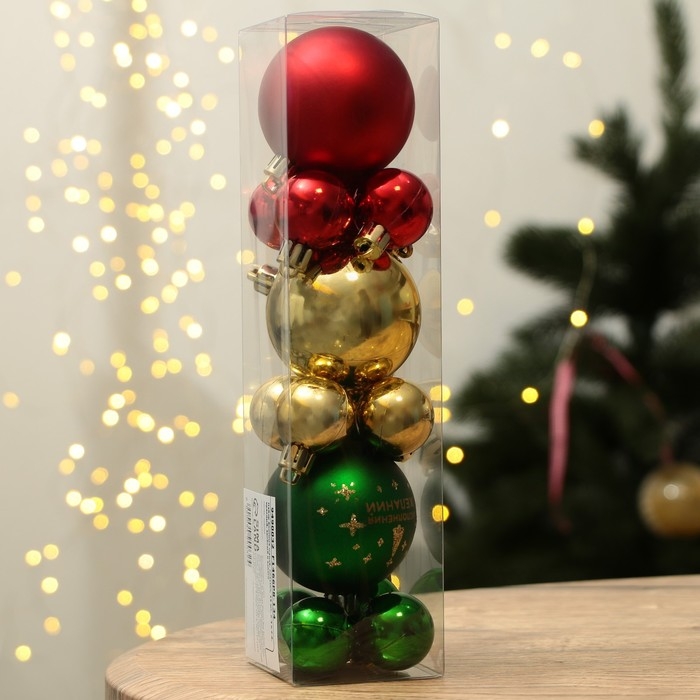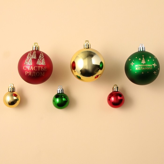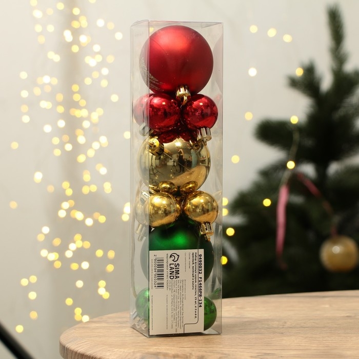 Шары ёлочные новогодние, на Новый год, d=3 и d=6, 15 шт., цвет красный, зелёный и золотой