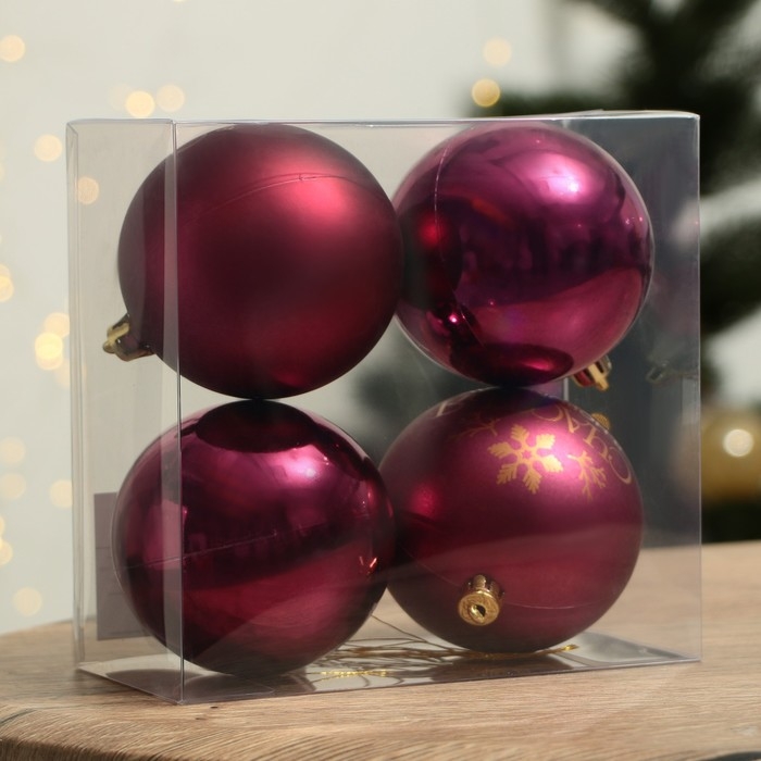 Шары ёлочные новогодние «Счастья в Новом году!», на Новый год, пластик, d=8, 4 шт., цвет винный с золотом