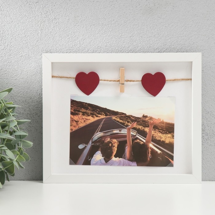Фоторамка дерево с прищепками 10х15 см "Два сердца" белая 2х22,5х18,5 см