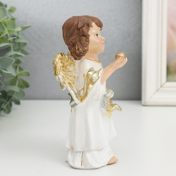 Сувенир полистоун "Ангел в бежевом платье, с золотыми яблоками" золотые крылья 7х7,5х14,5 см 94915