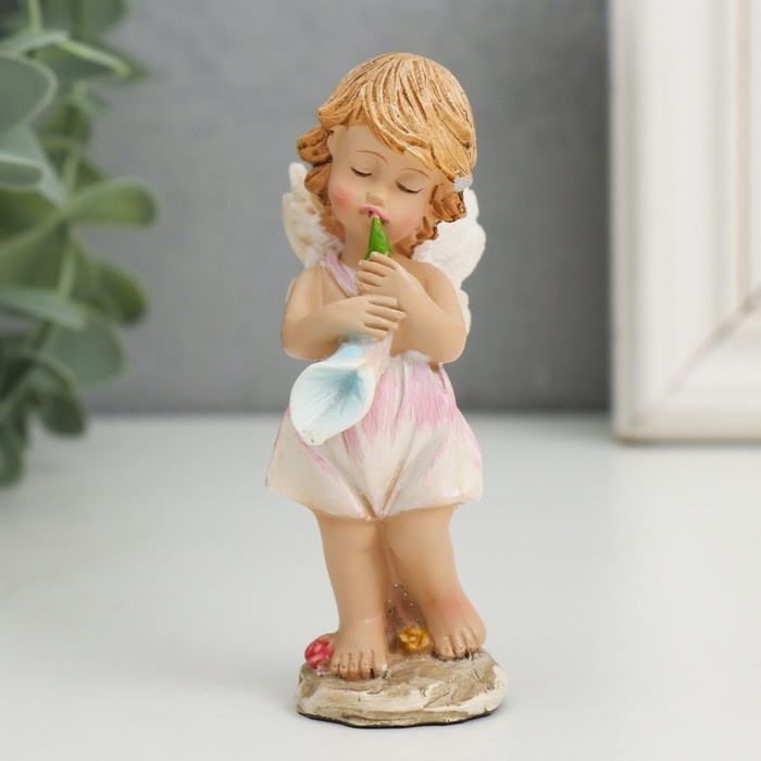 Сувенир полистоун "Ангелочек-музыкант - игра цветов" МИКС 3,5х4,5х9 см