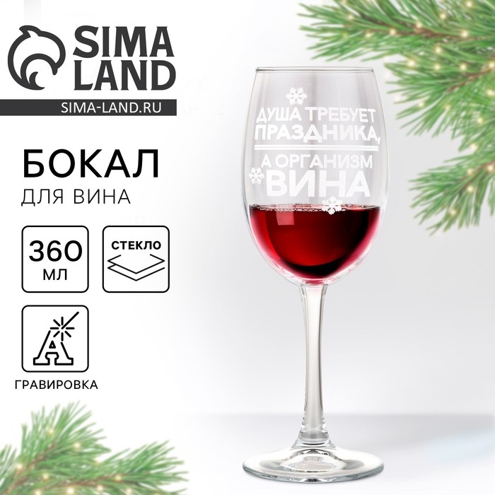 Бокал для вина новогодний «Душа требует праздника», на Новый год, 360 мл