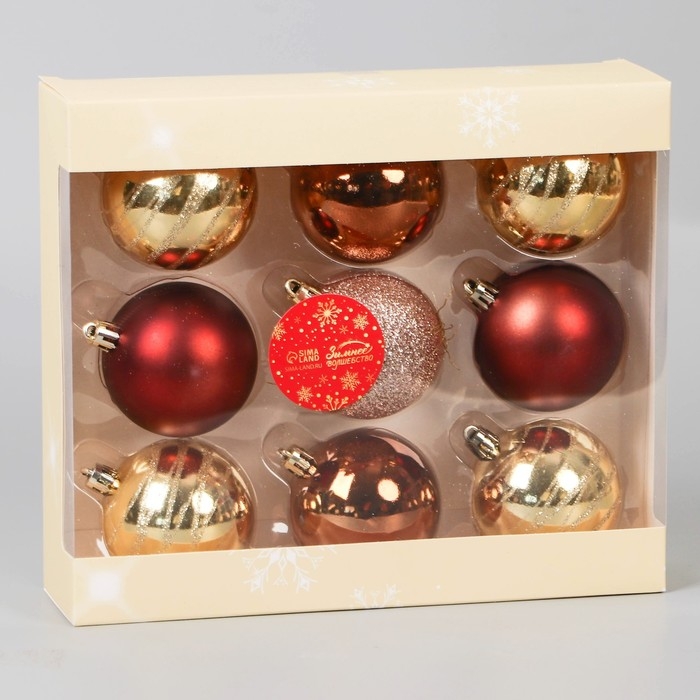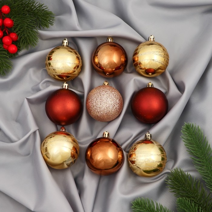 Набор шаров пластик d-6 см, 9 шт "Адель" кольца, золото бордо