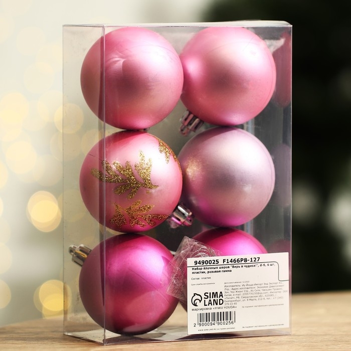 Шары ёлочные новогодние «Верь в чудеса!», на Новый год, пластик, d=6, 6 шт., цвет розовая гамма